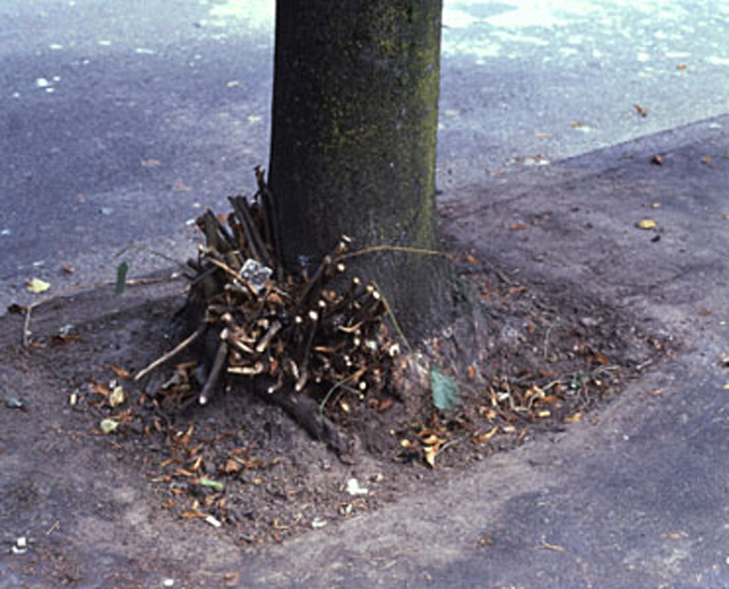 The three pictures by Jeff Wall are examples of the less dramatic, less obviously cinematographic aspects of his work. In fact, they seem like details lifted out of the background from another picture, not even important enough to be called close ups. ‘A sapling supported by a post’ (2000), ‘Clipped Branches, east cordova St. Vancouver’ (1999) and ‘Peas and Sauce’ (1999) are quiet celebrations of the simplicity and vitality of a humbled nature.