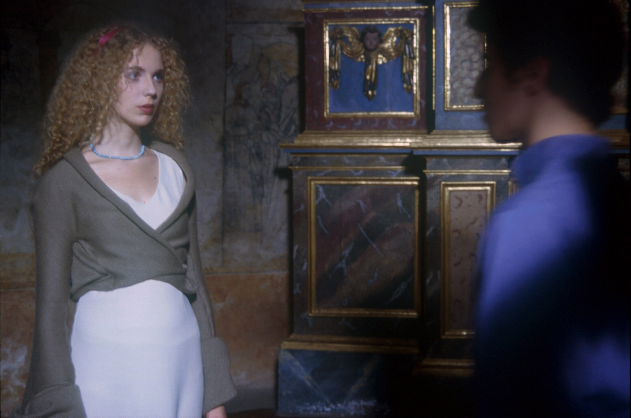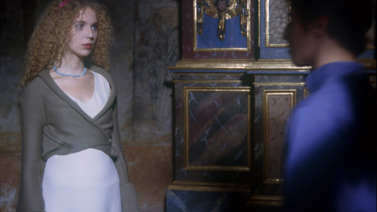 Le monde vivant is a fairytale for everyone and all age groups -but one has to comment that there is a lot more to enjoy for those of us with a preference for intellectual self-mockery and dry humorous minimalism. A young man, Nicolas, leaves his parental home on a quest into the unknown. In the woods, he meets the Brave Lion Knight, accompanied by his faithful Lion. The Lion is played by an amiable looking labrador that does however have a beautiful lion’s roar. This only goes to say that Green succeeds in convincing us that we are watching a mediaeval epic of chivalry -despite the everyday clothing of the knights and the occasional use of anachronistic language and ironic references (the monster that lives in the woods `just past the Lacanian witch’). Le monde vivant has enchanted trees, child-eating monsters, beautiful damsels, a real castle and everyone is morally tied to the `word’ once given. There, in the teasingly presented quest for the meaning of the `word’, of the `myth’, of `sound’, `perception’, the underlying significance of Le monde vivant can -not must -be sought.
