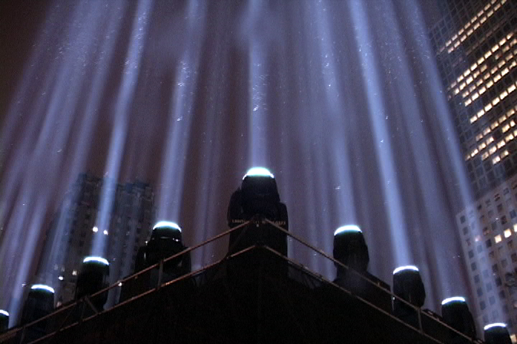 From one lone street lamp to the brightest light ever made, The Light culminates as a metropolis beacon reaches skyward. Ultimately, the attempt to pierce the night, to know the unknown, ends in somber quiet. The progression begins in an ordinary provincial street at night and ends at the World Trade Center memorial lights, shown not in direct conjunction with the events that brought about their existence, but with a formal and abstracted transcendence.