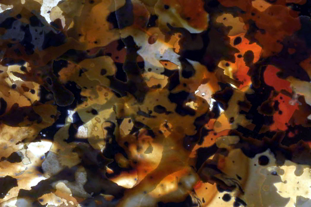A video as an exploration, a journey through three abstract worlds: subterranean, terrestrial and atmospheric. Made with paint, ink and paper on 16mm and 35mm film strips, digitally manipulated. Inspired by Roland Barthes’ Image-Music-Text and by the work of Stan Brakhage.