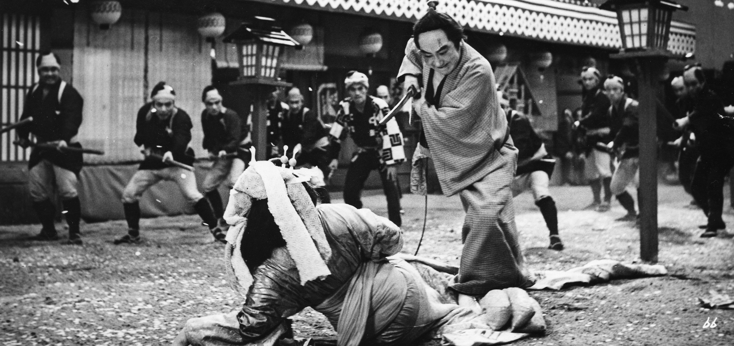 A glorious melodrama written by Mizoguchi collaborator Yoda Yoshikata, Yoshiwara: The Pleasure Quarter ranks with Uchida’s finest post-war films. A successful textile industrialist from the provinces is beloved by his employees for his kindness, but cannot find a wife because of a disfiguring birthmark on his face. Even the Yoshiwara courtesans refuse to entertain him, until an indentured peasant prostitute, Tamarazu, takes the unsavory assignment and treats him with brash tenderness. ‘The scar is not on your heart’, she scoffs, and the grateful businessman falls madly in love with her, ultimately losing his fortune in the expensive quest to purchase her freedom. When faced with her betrayal and his own financial ruin, the man takes revenge, turning the lavish ceremony to mark Tamarazu’s ascension to courtesan into a slashing spectacle. The script’s taut determinism, with its interlocked rise (hers) and fall (his), and teeming social detail; the dynamism of the scope cinematography; and the remarkably ambiguous characters of the besotted businessman and the grasping whore – in her earthiness and ambition she reminds one of Imamura’s enterprising insect women – make Yoshiwara seem like some kind of lost classic. (JQ)