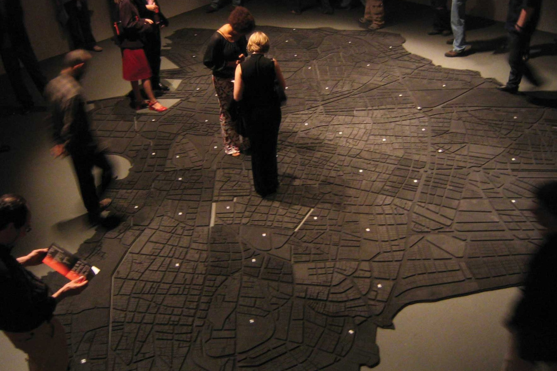 The Lebanese artist Marwan Rechmaoui designed a map of Beirut city, engraved in thick, lusterless rubber. The result is a monochrome, rather macabre puzzle that invites a surveying gaze and at the same time suggests dangerous territory. The ground plan is remarkably big and flat. Rechmaoui radicallly leveled the topography of the city, to eradicate all hierarchical distinctions between higher and lower areas. This map is accessible for all visitors.