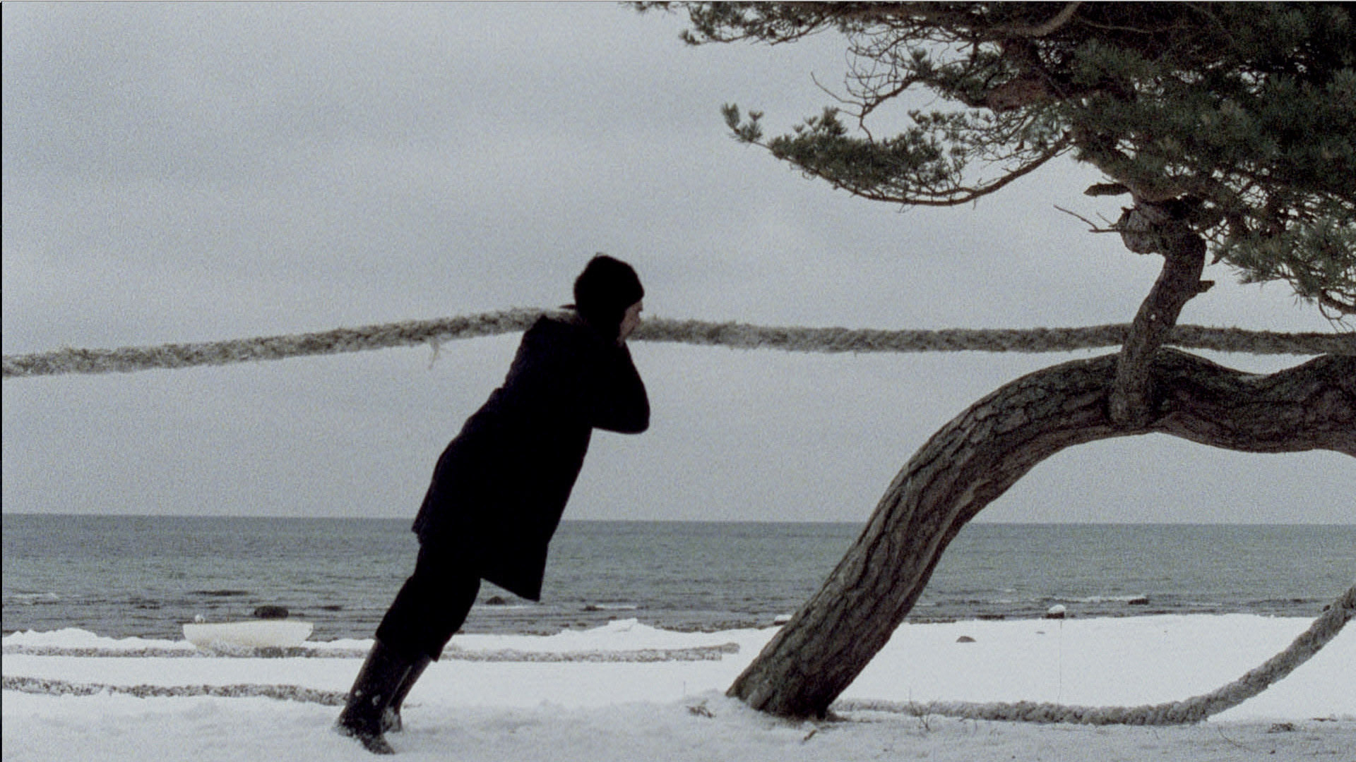 The film tells the story of an island in danger of disappearing. The inhabitants do all they can to avert this fate; we see them fighting the elements to secure their future. A story about local customs, beliefs, personal dramas and the fear of a society of being swallowed up by the forces of nature. Just as in her earlier work, Rosa Barba is less interested in telling a chronological story and more interested in investigating all the elements that play a role in the specific situation. It is up to the viewer to make a link between the various sections in order to create a coherent story.