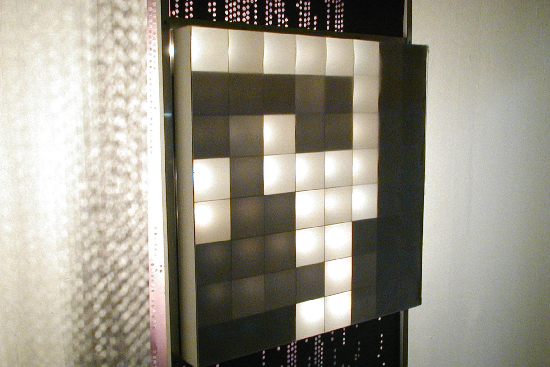 There have been punch card systems for processing and storing information in all possible variations and many different media: from the control of looms in the 19th century, through automatic organs and pianos, to the famous IBM computer punch card. Paper Pixel takes up this 200 year old principle: the punched data carrier is read optically and is simultaneously part of the display mechanism. The visual information saved in the holes (a scene from the video game Half Life, in an 8 x 8 pixel resolution) is converted directly into light. The digital principle of zero and one appears in the Paper Pixel installation in a mechanical and analogue form. From a historical perspective, one could speak of the invention of the screen that never existed.