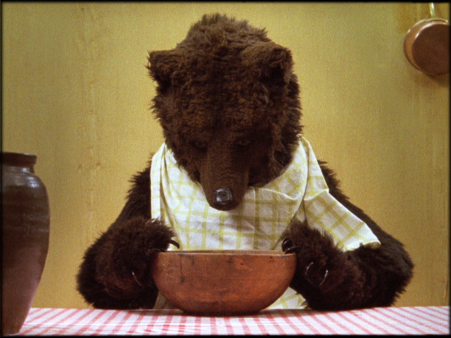 A hunter is after a bear in the forest. The bear hides in the house of the little girl Goldilocks, who gives him food and plays with him. But then everything changes. The first short film by Desaunay is a wayward, ironic adaptation of the British fairytale Goldilocks and the Three Bears.