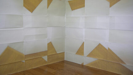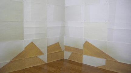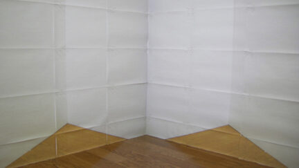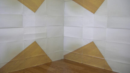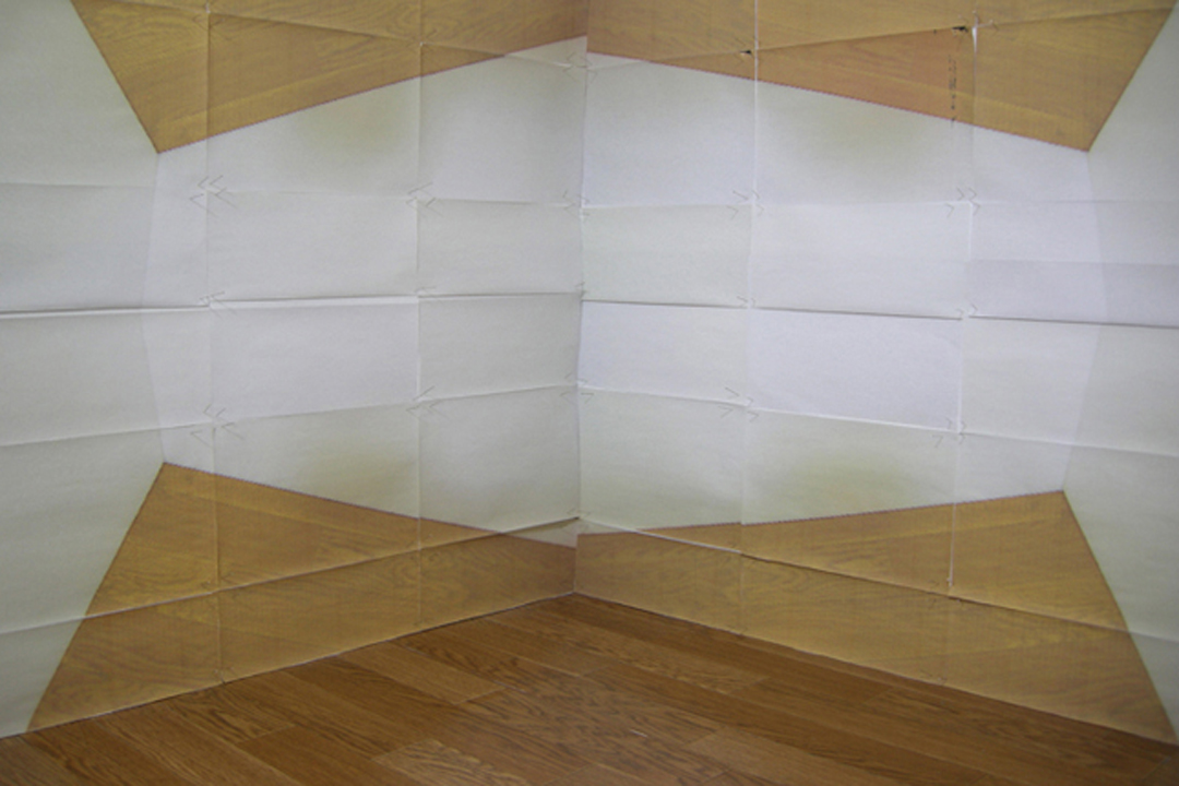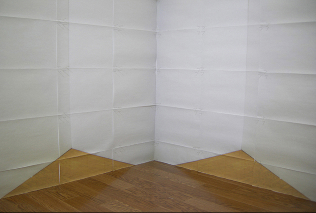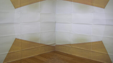 Space is the Place is the latest video animation by Eriko Sonoda, whose meticulous lo-fi explorations of flattened space use sheets of paper to transcend finitude. A corner wall in the artist’s room is transmuted through a staccato of origami exchanges.