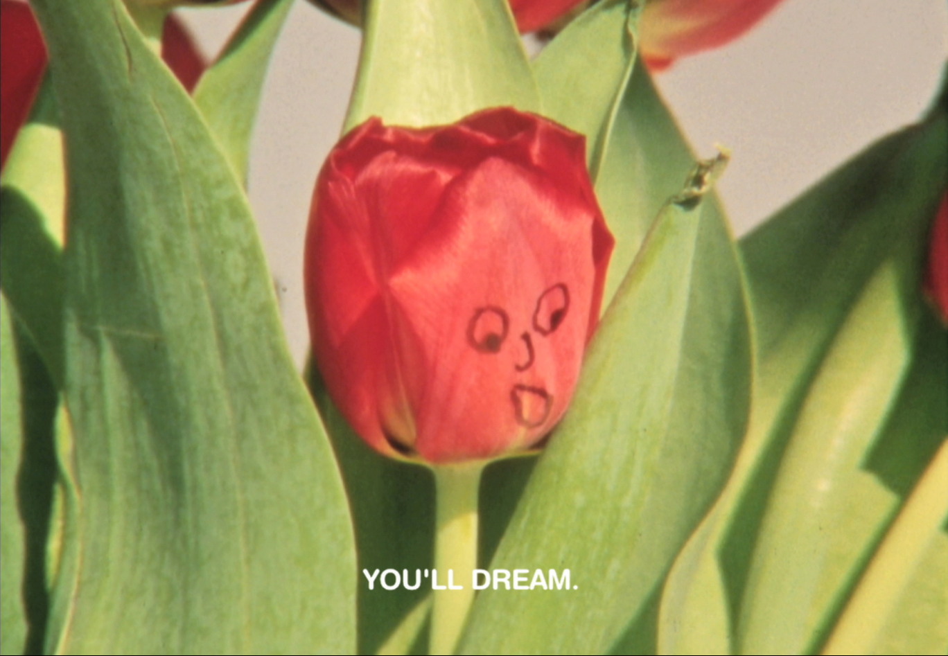 Tulips with faces dish out harsh truths and put us in our place on this planet. Darkly humourous with an overtone of cynicism, Magdy parodies the instructional film format and subverts it by informing us that inaction may be the most effective way of being.