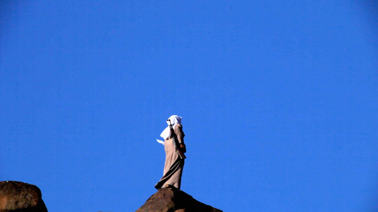 A mysterious, dusty drive through the no man’s land of the Sinai Peninsula led by a group of Bedouins with rifles. The goal never really becomes clear. The area is isolated and everything seems to take place outside political, economic or historical frameworks. The men’s only rule seems to be: remain invisible and intangible. Brief anecdotes and conversations about daily struggles provide links to the outside world.