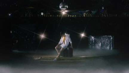 Referencing a popular ABBA song, Su Hui-yu’s video conducts a séance of a late-night Taiwanese television variety show where host Frankie Kao presented song and dance numbers. Filmed in the only remaining Red Envelope cabaret theatre in Ximending, Taipei, the mourning of a disappearing tradition is imbued with melancholy.