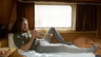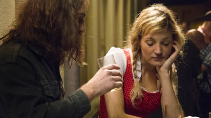 What is the wild-looking Jens (Frederick Lau) doing in the remote Luxembourg village of Schandelsmillen? Right from the start in Gutland, it’s clear that this German stranger has something to hide. Yet he is greeted heartily. He can help at harvest time, is invited for dinner and on his first night he beds the beautiful Lucy (Vicky Krieps). Is life in this small hamlet all that it seems? Mutual distrust grows; maybe Jens isn’t the only one with something to hide. In her debut, Govinda Van Maele builds tension that seems plausible on the surface yet also takes curious turns. With a disappeared resident, seductive women and a box full of strange nude photos, Gutland not only has thriller elements but also a mysterious and surrealist mood, subtly unfolding in a well-paced narrative tempo. With beautiful – 35mm – images of the picturesque countryside of Luxembourg at it most sinister.