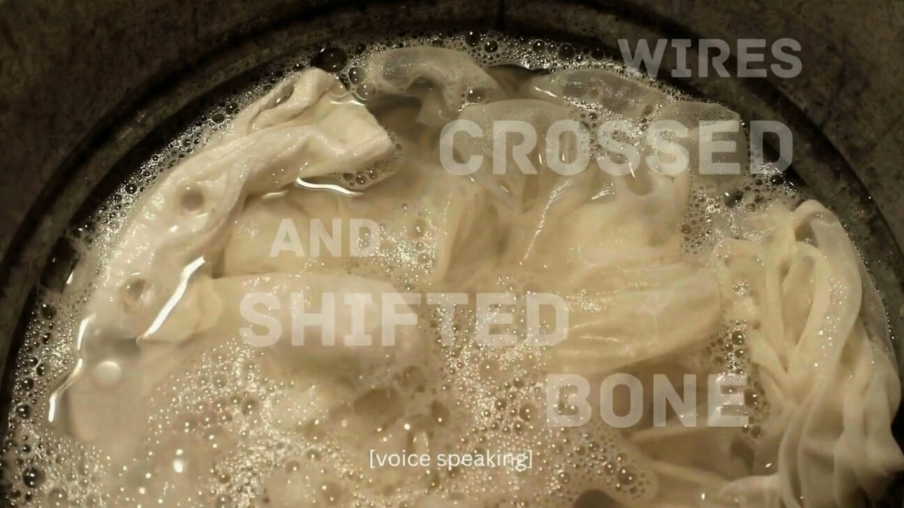 A dancer’s unusual motion is “scrubbed”: transformed by a stuttering manipulation of image and sound. -