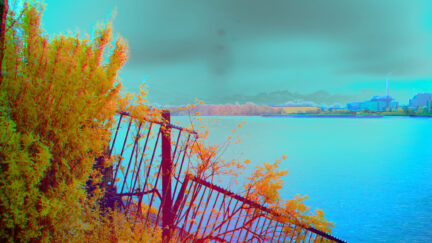Michiel van Bakel, whose shorts have regularly featured in IFFR, combines scientific techniques of observation and recording with poetic treatments of image and sound. Here, a slow pan shot shows us the Chemours industrial plant next to the contaminated Merwede river, while photographic and digital processes reveal a hidden world of agitated, spectral colours and noises. It offers a paradoxical spectacle, combining lyrical beauty with disquieting horror.