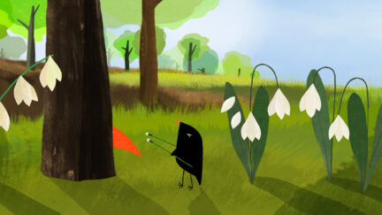It is springtime and the little bird is nurturing the first leaves on the trees. One by one, the blossoms open, luring the zooming bees. The little bird sets off in playful pursuit – but there’s a fox in the forest as well…