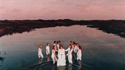 A film in the avant-garde tradition of dream or trance visions. It begins with forbidding images of Rotterdam’s skyscrapers. A female figure, oppressed by this urban environment, plunges into reveries of the natural world, replete with mysterious, mythological figures and ambiguous, ritualistic actions. Religious symbols both beckon and repel her. Fé Baan’s film uses superimpositions, dance-like movements and stylised camera work to evoke both ecstasy and threat, confinement and liberation.