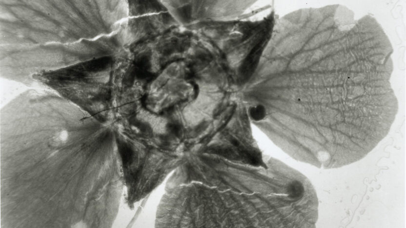 An encounter with a mysterious, luminous substance and the mythical star jelly. Coronal Kirlian photography joined with hand-processed images. -