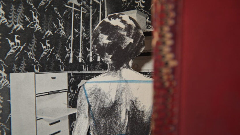 A woman’s special relationship with her domestic environment: she stretches yarn between the different rooms of her house. -