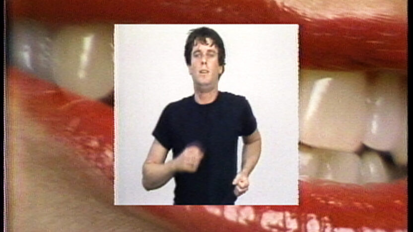A running man, exhausted and near collapse, is teased onward by the disembodied red lips of a woman. Will the man meet his deadline?