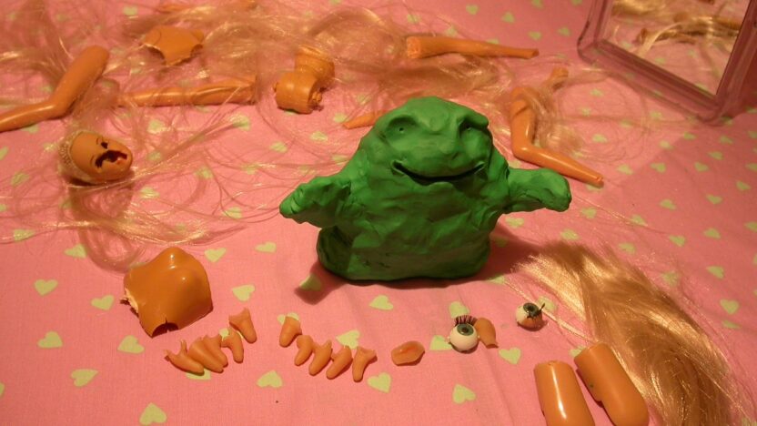 Humorous clay animation about a green creature that merrily cuts up a Barbie doll to change itself into a femme fatale. With an unexpected result!