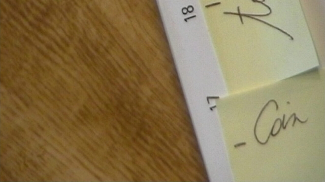 Een meetlat onder een gefixeerde camera meet de afstand van enkele objecten in de ruimte ten opzichte van het vaste camerabeeld. Deze actie wordt herhaald in de vier richtingen van het atelier.