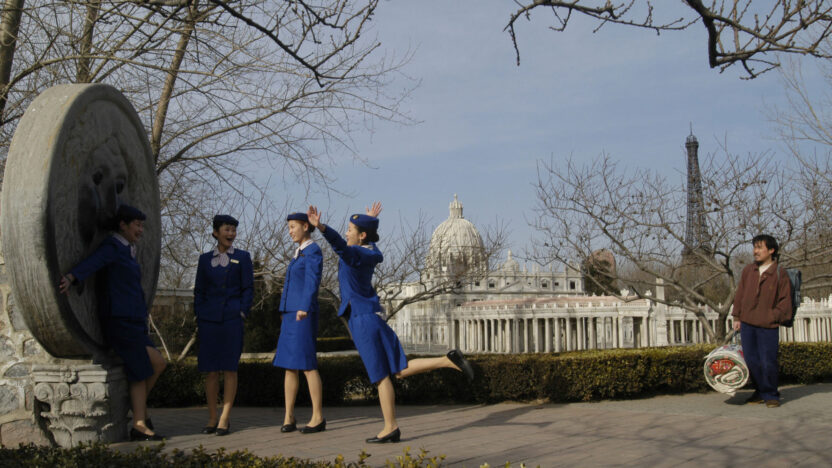 Na drie speelfilms over zijn Noord-Chinese geboortestreek Shanxi verplaatst Jia Zhang-ke zich in The World naar zijn huidige, vaste woonplaats Beijing. En toch ook weer niet, want het magnifieke decor van de film wordt gesierd door verdwaalde iconen als de Taj Mahal, de Eiffeltoren, Manhattan, de Big Ben en de piramiden. Het zijn miniaturen, replica’s in Beijing World Park, waar het ‘nieuwe China’ zich alvast komt laven aan de beloften van de groeiende welvaart. Tao (Zhao Tao – Jia’s muze) zingt en danst er elke dag vrolijk voor het publiek. Haar vriend Taisheng is een van de bewakingsbeambten van het themapark. Net als haar collegadanseresjes Xiaowei en Youyou staat Tao op een kruispunt in haar relatie, terwijl Taisheng zich aangetrokken voelt tot de modeontwerpster Qun. In dit sfeervolle, intelligente portret van de jonge inwoners van Beijing bevestigt Jia opnieuw zijn rol als kroniekschrijver van het moderne China. De globalisering, het consumentisme en de snelle, moderne communicatie maken de leefwereld van de karakters licht, maar tegelijk oppervlakkig, geïsoleerd en onthecht. De versnelling van de tijd kan misschien het gat in China’s geschiedenis dichten, maar biedt nog geen oplossing voor menselijke behoeftes en conflicten. Een complexe thematiek, prachtig vormgegeven in scèneovergangen met korte animaties in mangastijl, elektronische beats, mooie toeristische glittershows en onthullende kleedkamertaferelen.