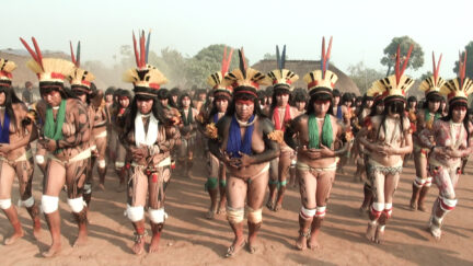 Omdat hij vreest dat zijn echtgenote het niet lang meer maakt, vraagt een oude Indiaan aan zijn neef of diens vrouw nog een keer de Jamurikumalu zou willen opvoeren, de rituele dans van de autochtone bevolking van de Boven-Xingu, die leven in het midden van Brazilië. De zieke echtgenote wil niets liever dan nog één keer meezingen met de vrouwen van het dorp. De voorbereidingen worden gestart, maar ook de enige vrouw die alle teksten goed kent, tobt met haar gezondheid. Een aantal oude cassettebandjes biedt ook geen soelaas. The Hyperwomen is een sober gedraaide, maar door de intelligente montage meeslepende etnografie-documentaire over een stam die in een andere tijd lijkt te leven. De Indianen wonen in rieten hutten, lopen meestentijds bloot rond – op wat draadjes en klodders verf na -, maar lijken volkomen op hun gemak voor de camera. Hun conversaties zijn zeer openhartig en uitermate seksueel getint. De gecompliceerde zang is prachtig, net als de minstens zo ingewikkelde, bijbehorende danspassen.