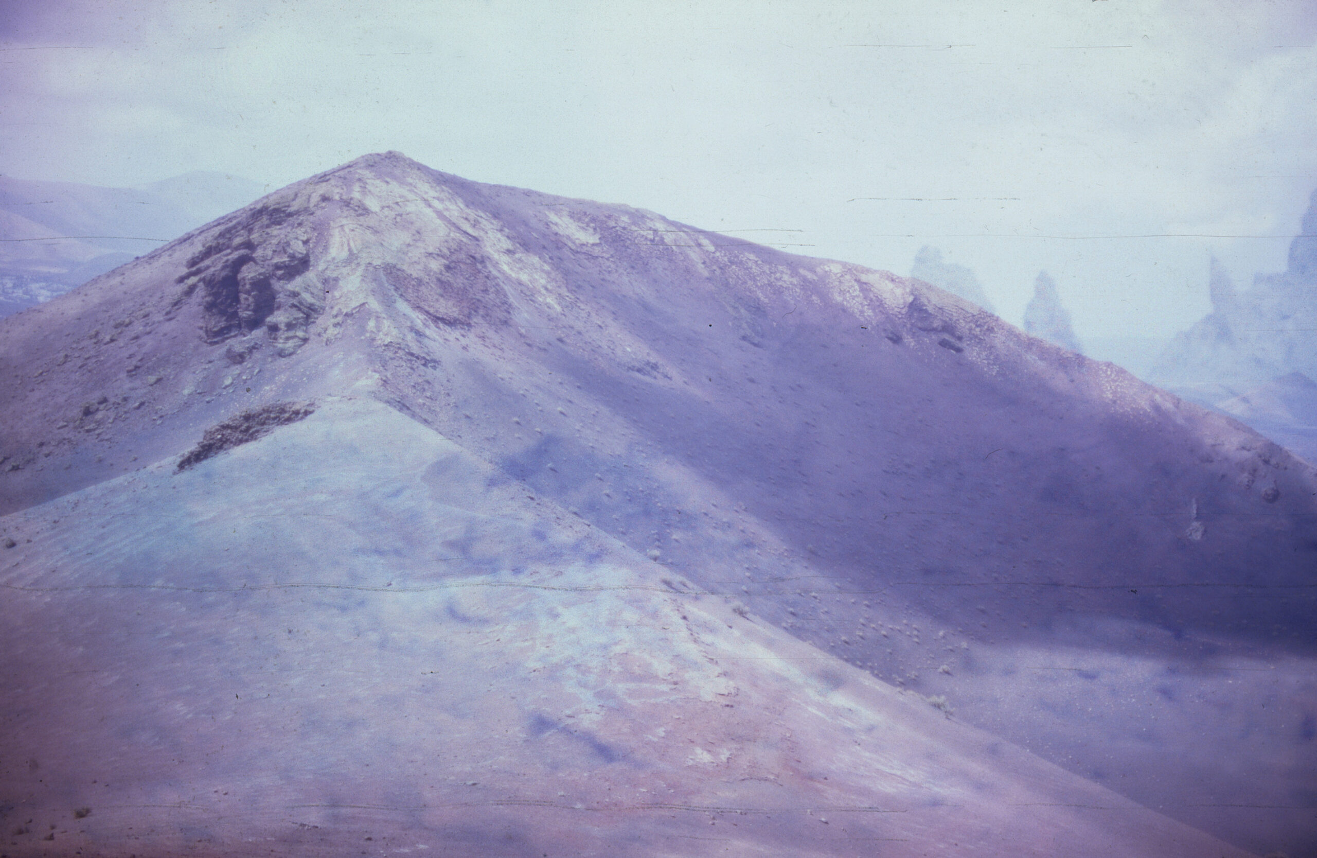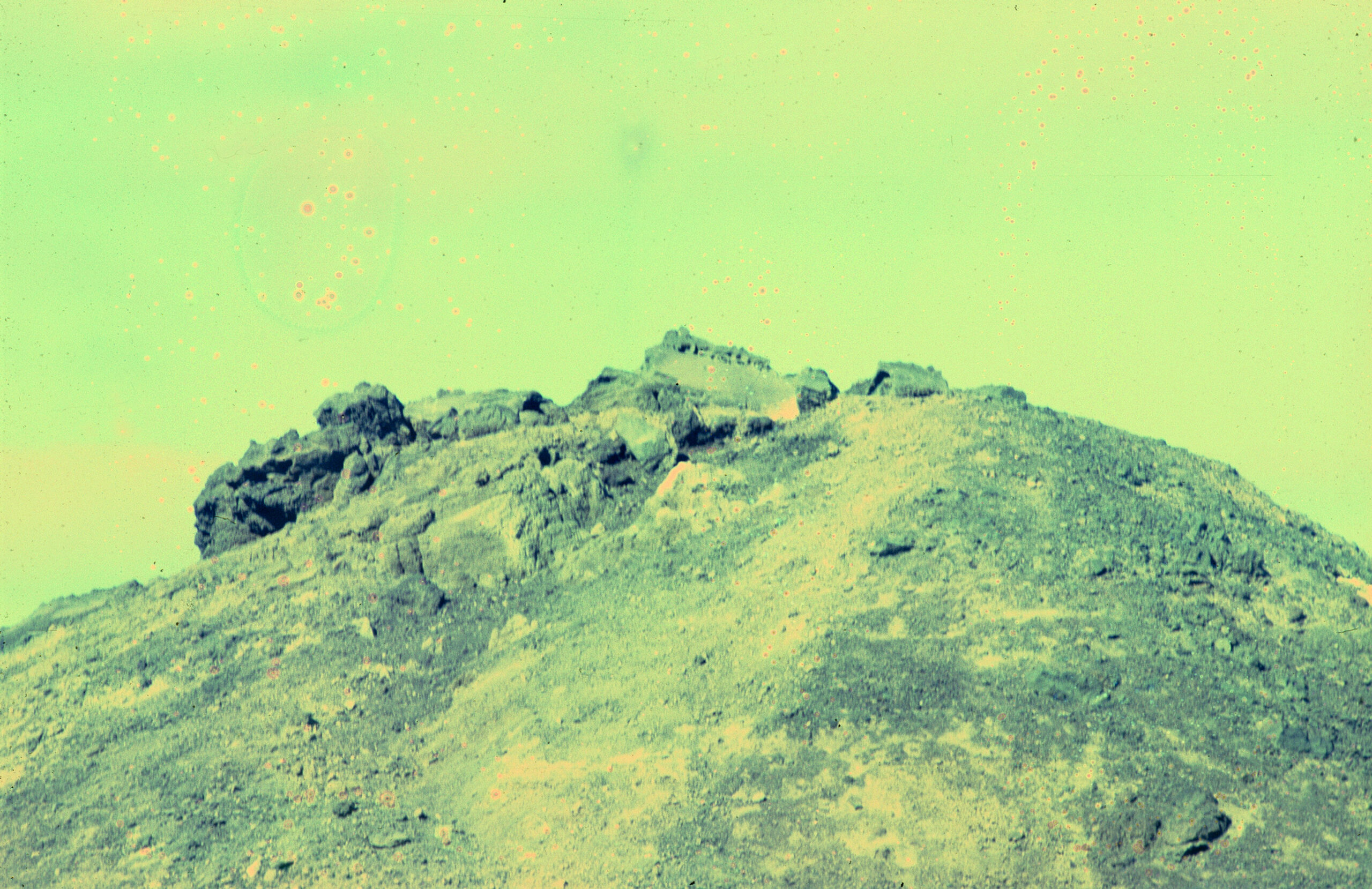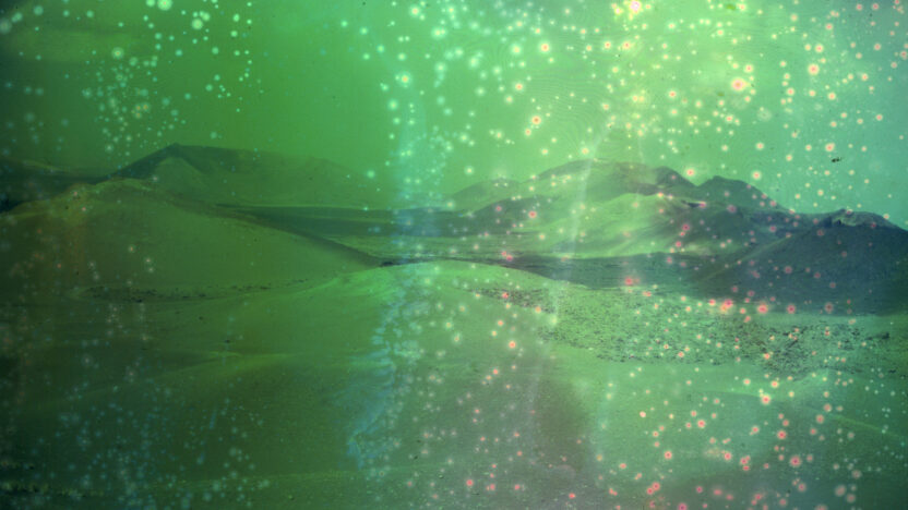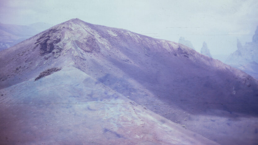 Deze dia’s van het vulkaanlandschap van Lanzarote lijken een toekomst te tonen die doet denken aan het ontstaan van de aarde. Door de negatieven bloot te stellen aan alledaagse chemische stoffen vervagen de details en doemen er kleuren op die het eind van de geschiedenis voorspellen.