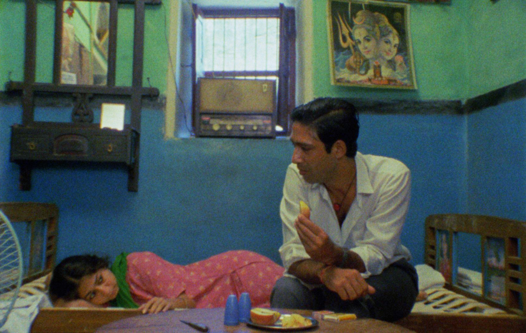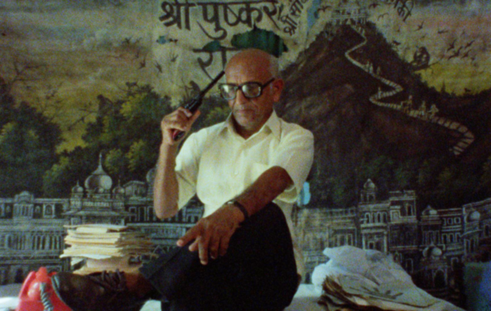 Kamal Swaroop is legendarisch in de Indiase avant-gardecinema; een ongrijpbare auteur van slechts enkele werken die zelden of nooit te zien zijn – of überhaupt vertoond mogen worden. Destijds viel Om Dar-B-Dar bepaald niet in goede aarde bij de autoriteiten, met als gevolg dat de film ‘spoorloos verdween’. Om Dar-B-Dar (een betekenisloze uitdrukking die door Swaroop wordt ‘vertaald’ als ‘I’m-Door-by-Door’) is een surrealistisch (anti)verhaal waarin de held Om maar in één ding heel goed is: zijn adem inhouden, terwijl zijn wetenschappelijk onderzoek (nou ja…) een nogal hoog magisch gehalte heeft. Zijn vader heeft al even buitenissige interesses en wijdt zijn leven aan astrologie; hij heeft er zelfs zijn baan als ambtenaar voor opgegeven. Maar dat klinkt allemaal veel gewoner dan deze vernietigend uitzinnige aanval op zo’n beetje elke heilige koe die India te bieden heeft in feite is.