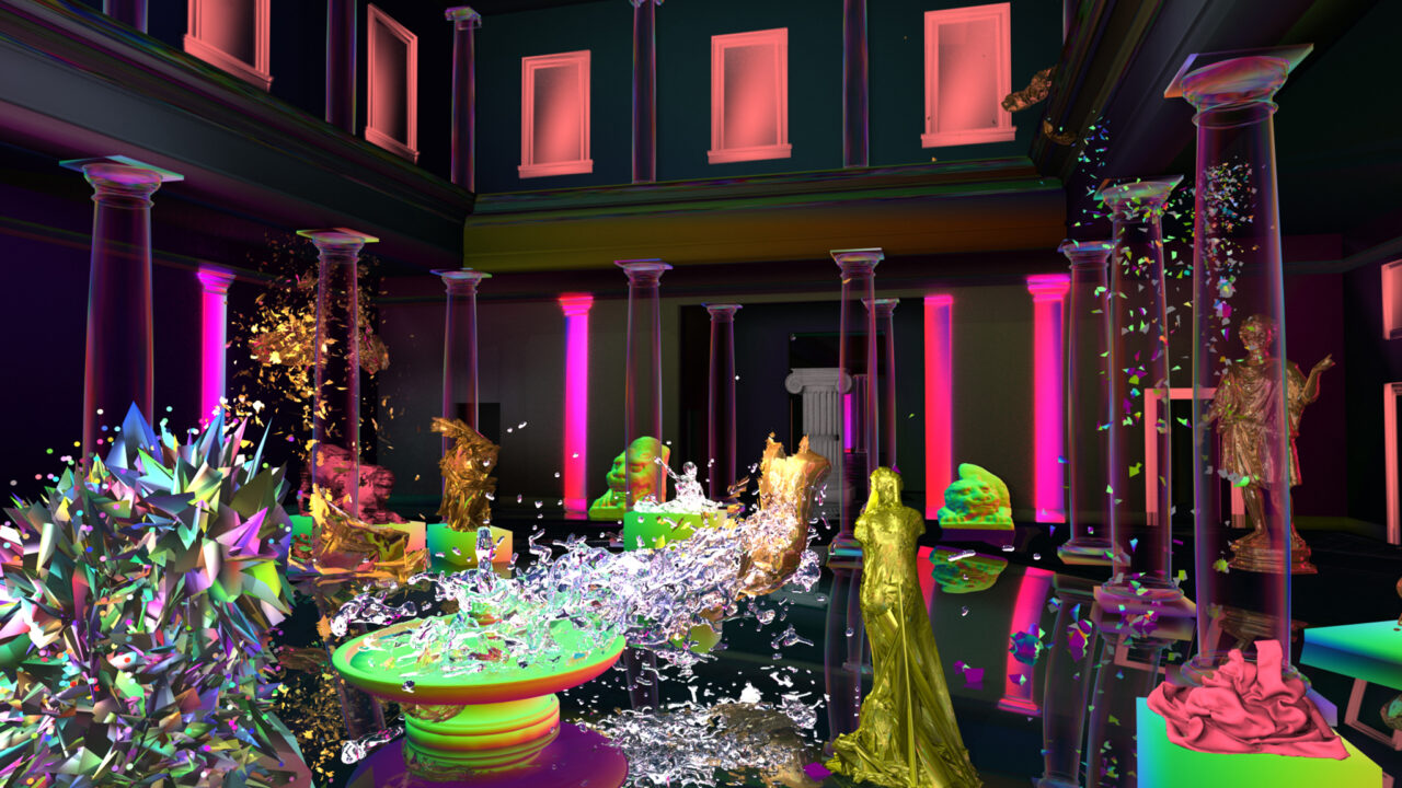 Metropolitan Triangle Garden is een 3D-animatie waarin enkele klassieke sculpturen in een bekende expositieruimte deelnemen aan een destructieve performance vol verstoringen en glitches. Het digitale museum kan statische objecten van een zekere schoonheid bevatten, maar blijkt veel meer een plek van beweging, transformatie en verval.