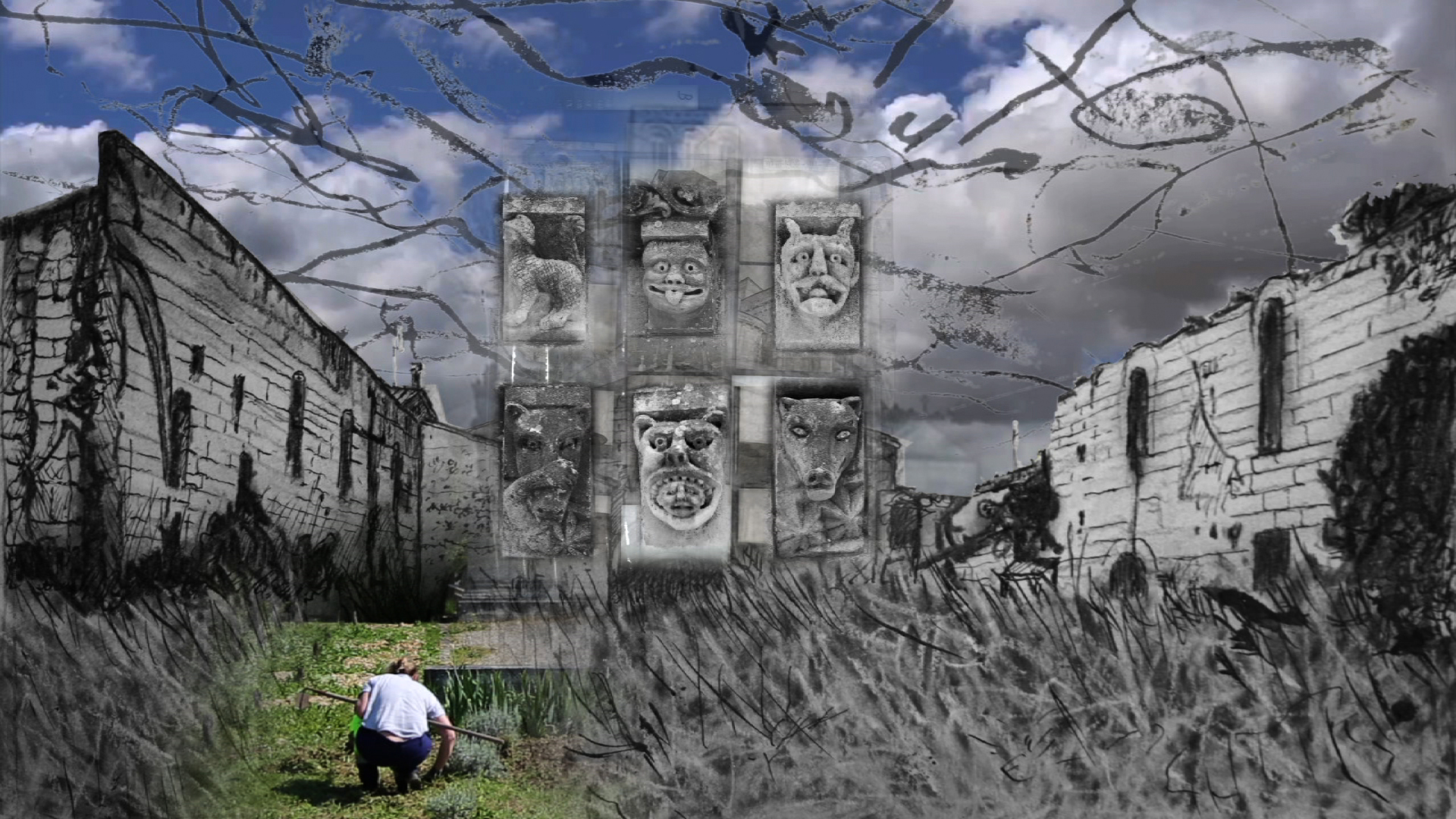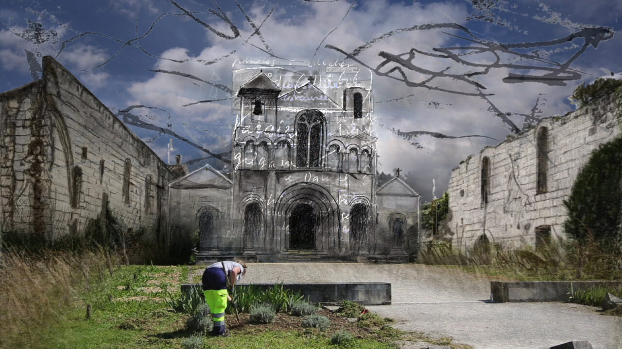 Bazins beoogde documentaire zou gaan over Romaanse kerken, gebouwd tussen 1000 en 1200, in de voormalige Franse provincie Saintonge. Hébert filmt de kerken – of resten daarvan – waarbij het beeld soms overvloeit naar oude foto’s en soms naar animaties in zwart-wit, door Héberts zelf gemaakt. Als voice-over leest acteur Michael Lonsdale uit Bazins nagelaten