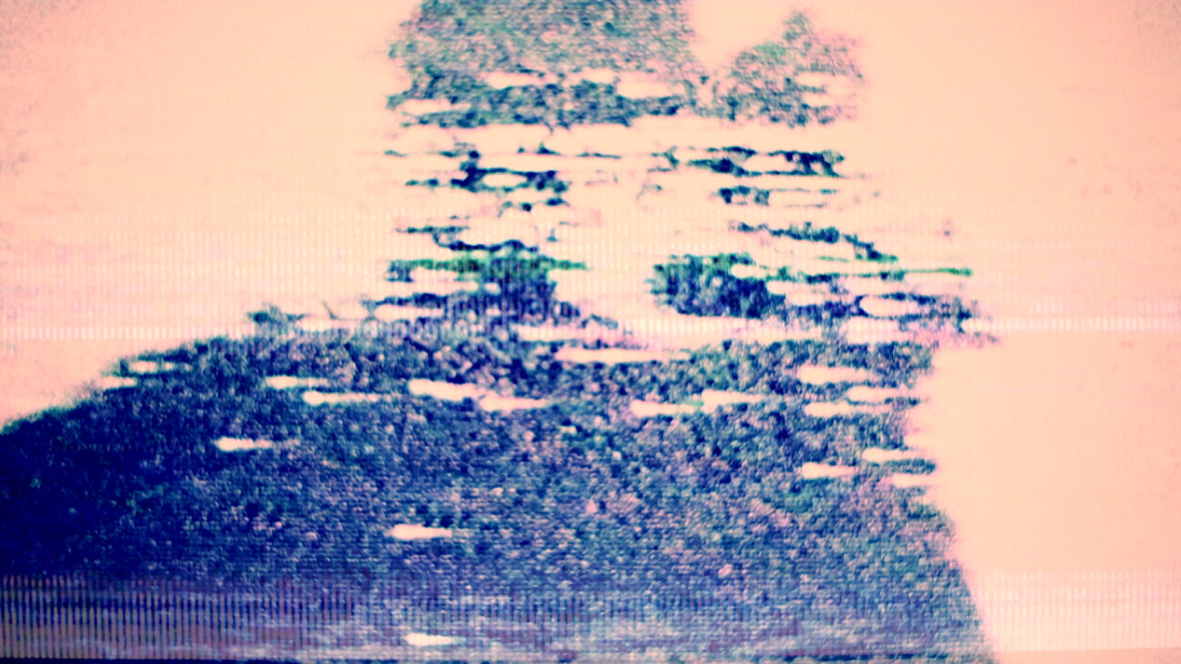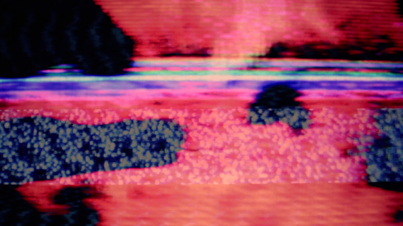 De ongewone beweging van een danser wordt ‘gescrubd’: getransformeerd door een stotterende manipulatie van beeld en geluid. -