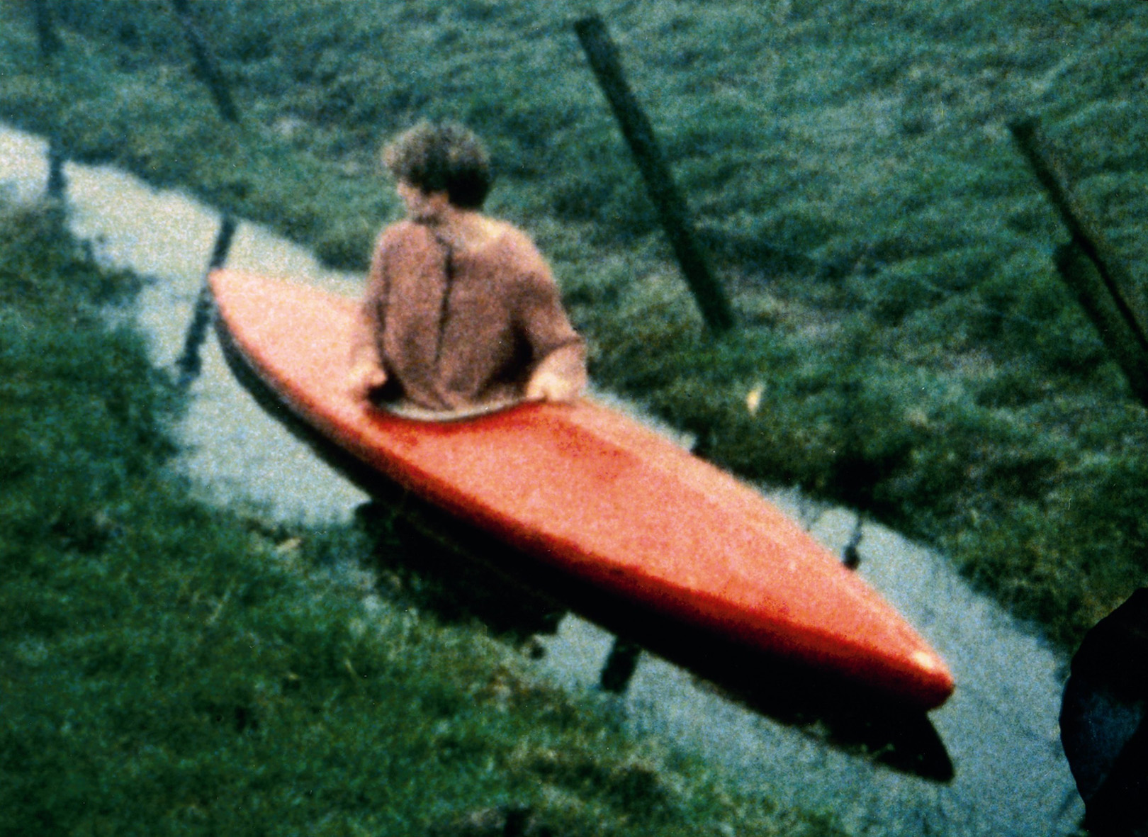 Zittend in een kano in een slootje mist de man die erin zit iets essentieels. Beweging komt als hij achterom kijkt en zijn evenwicht dreigt… -