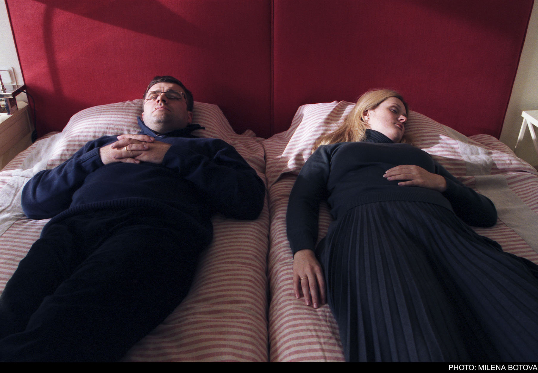 De soepele camera tast wanden af van gangen en kamers, waarbij het complicerende dubbelbeeld de camerabeweging accentueert. -