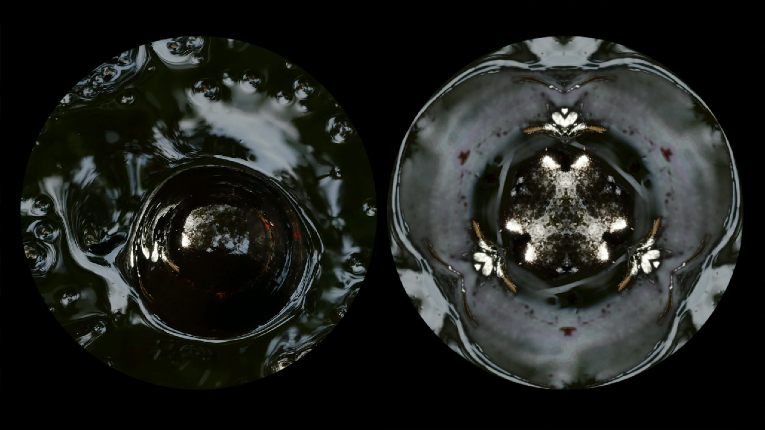 Twee cirkels, twee keer hetzelfde beeld: een onrustige poel van borrelende pek. Ook de klankband roept helse associaties op: een ooggetuigenverslag va -