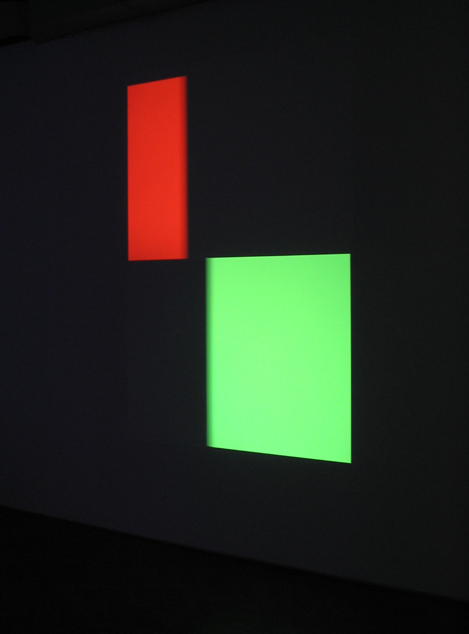 Naast een verwijzing naar de vroege abstracte film, hebben de geprojecteerde wipe-patronen in rood, groen en blauw ook een directe impact op wat er bu -