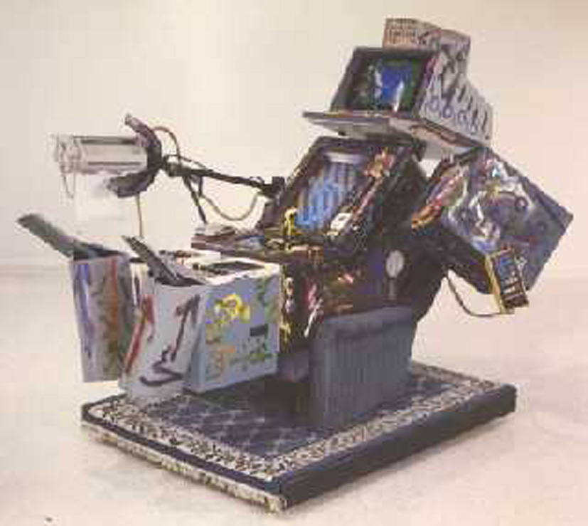 Installatie over de dubbelzinigheid van het begrip realiteit, de relatie tot beelden en informatie, met verschillende referenties naar hetzelfde eleme -