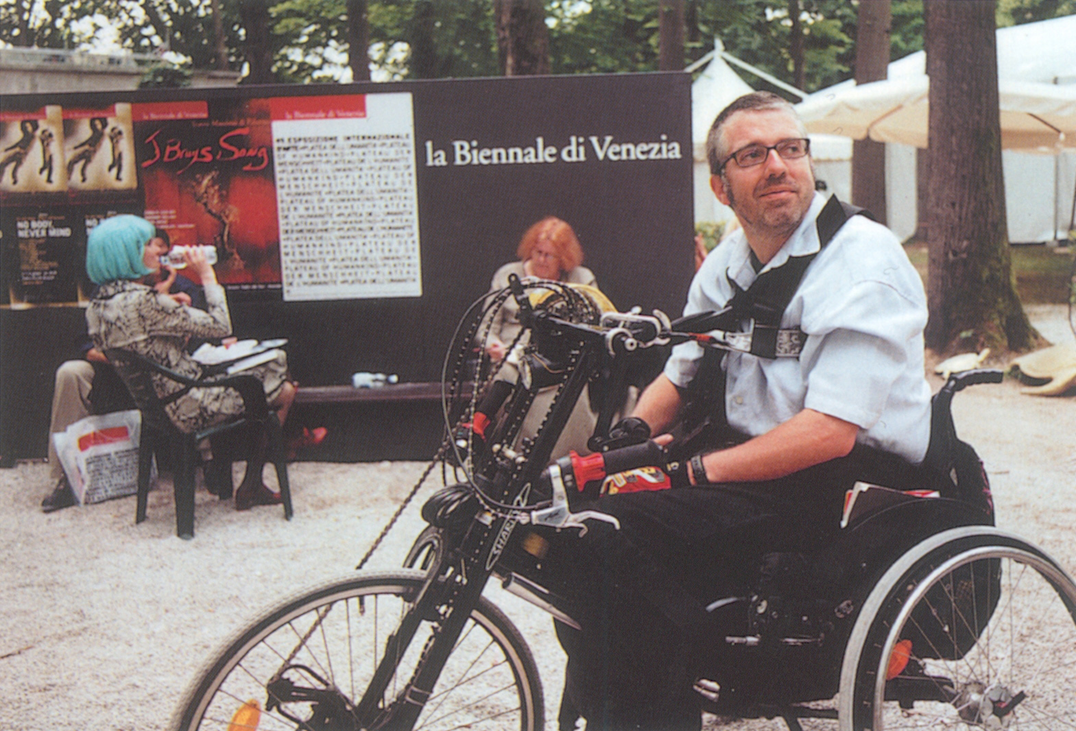 Bloedstollend document van een zich met handpedalen voortbewegende, aan een rolstoel gekluisterde filmer. Met ware doodsverachting stort hij zich tuss -