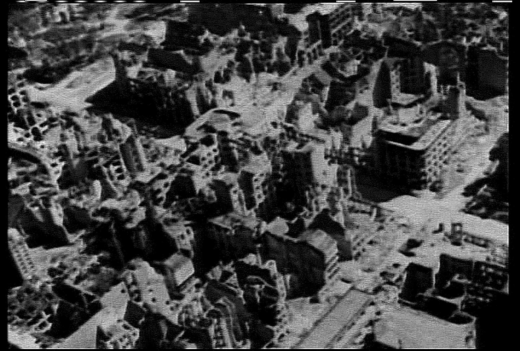 Abstracte film waarbij de tand des tijds zich letterlijk het materiaal heeft ingevreten. -