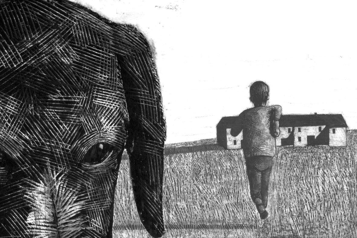 Elegante tekenanimatie: in één travelling shot reizen we door de herinneringen van een jongen. Een grootmoeder, een hond, een geweer. -