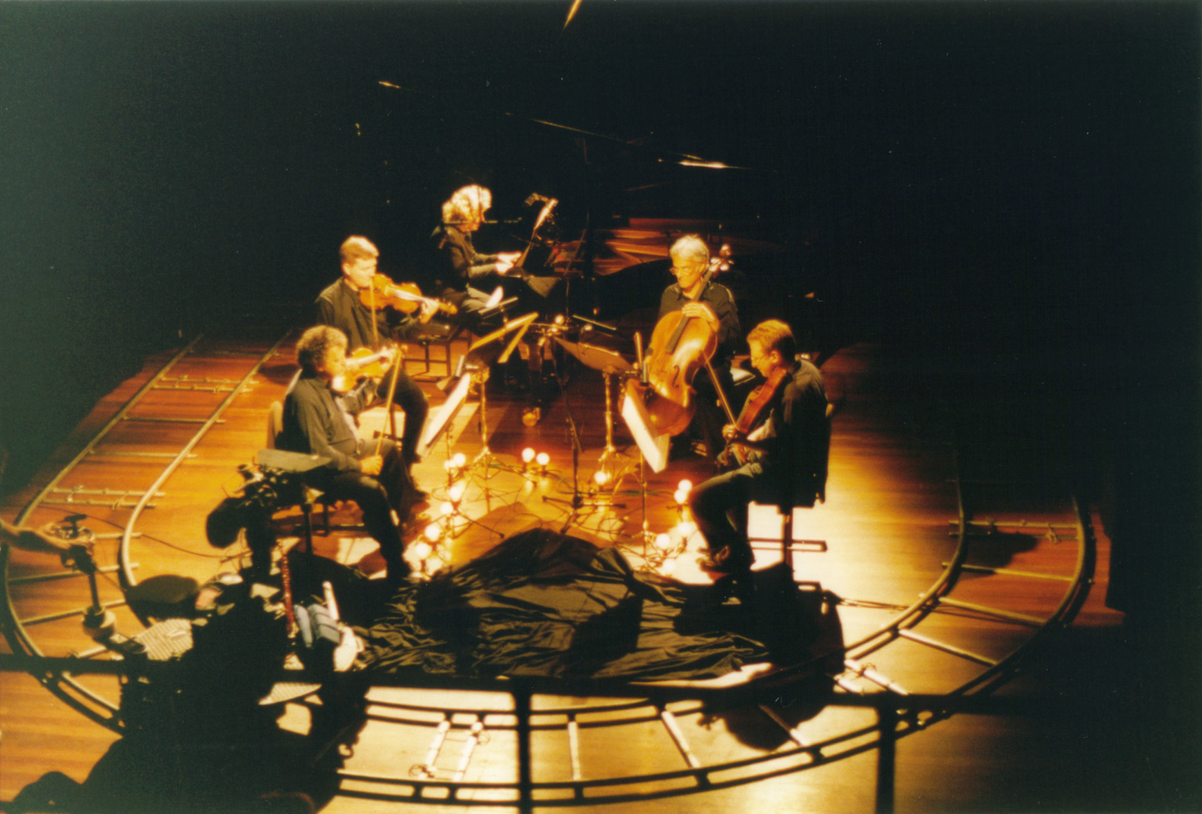 Mise-en-scène stroomlijnt de kijker met de gelaagde muziek van Elliott Carters Quintet voor piano en strijkkwartet. -