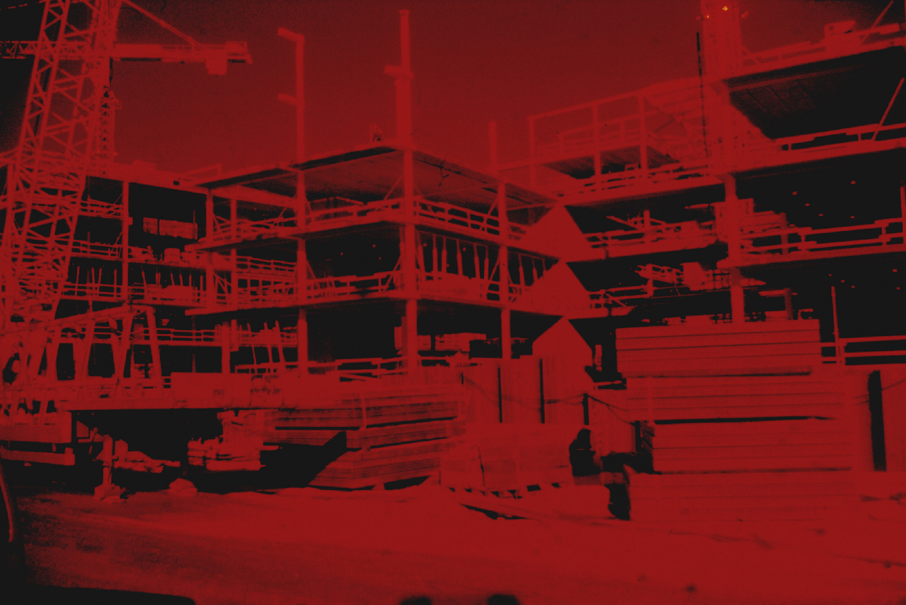 Compositie van een serie opnamen van bouwplaatsen en IJslandse landschappen. -