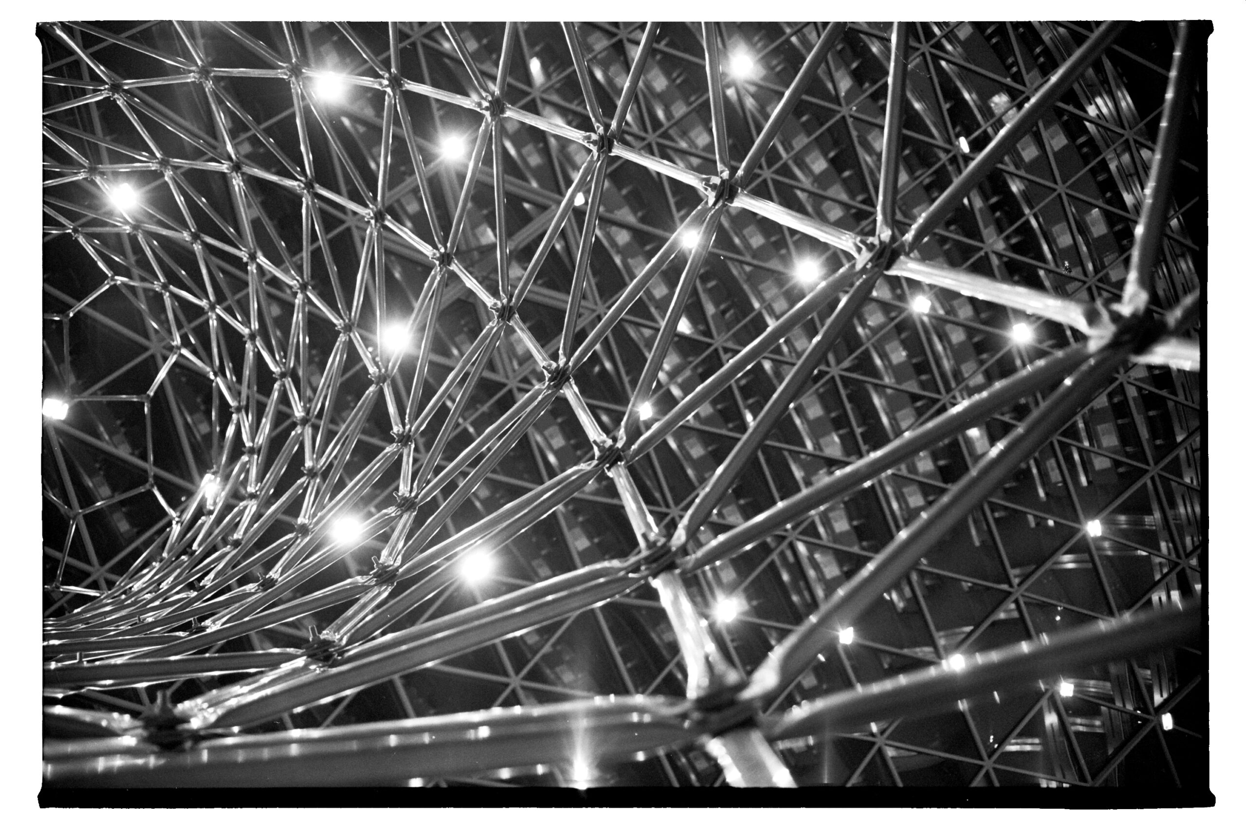 Een tijdelijk monument, geïnspireerd door de buckytube, genoemd naar filosoof Buckminster Fuller, wiens methode de lichtste, sterkste en meest rendabe