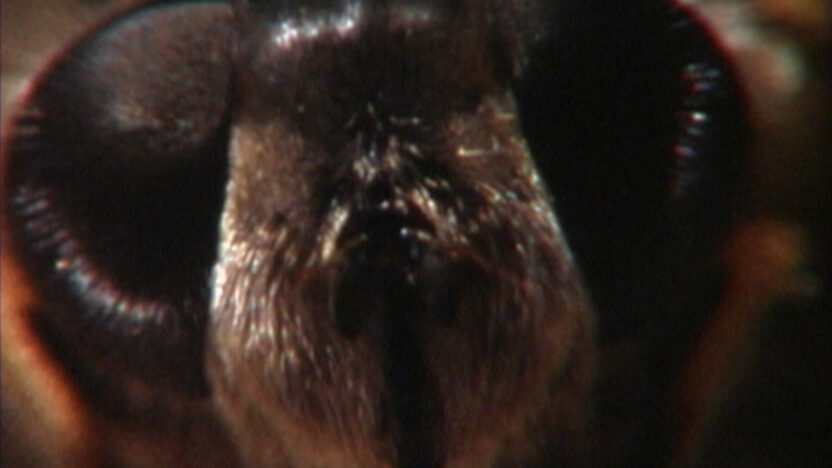 Een spin, een slak, een vlieg. Wriemelende woudbewoners wurmen zich door de ondergroei van het geboomte. Gefilmd en geprojecteerd op Super8. -