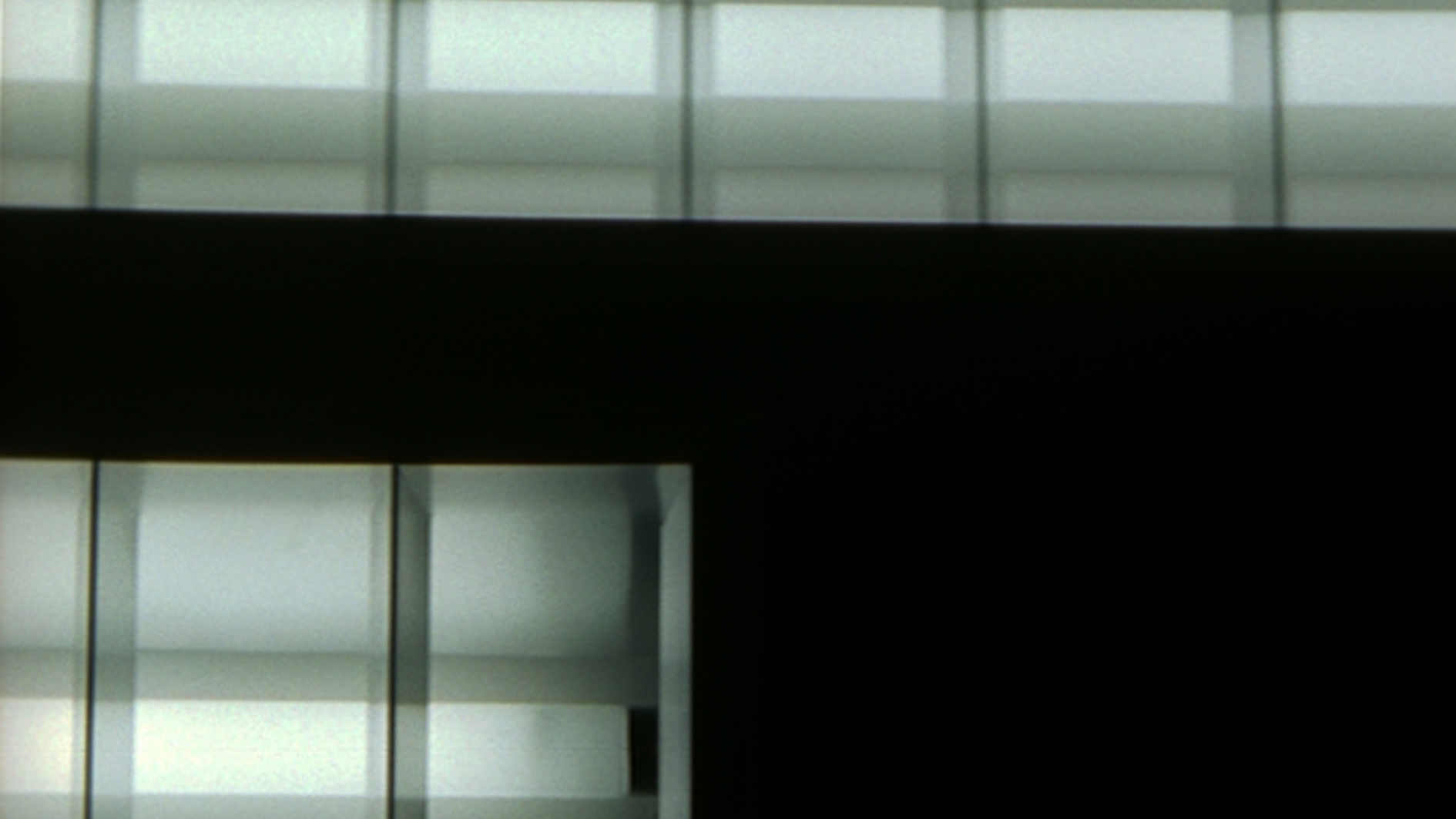 Een hypnotiserende dans van tl-balken die traag wuivend in een afgrond verdwijnen. Horizontale beelden tegen een verticale achtergrond. -