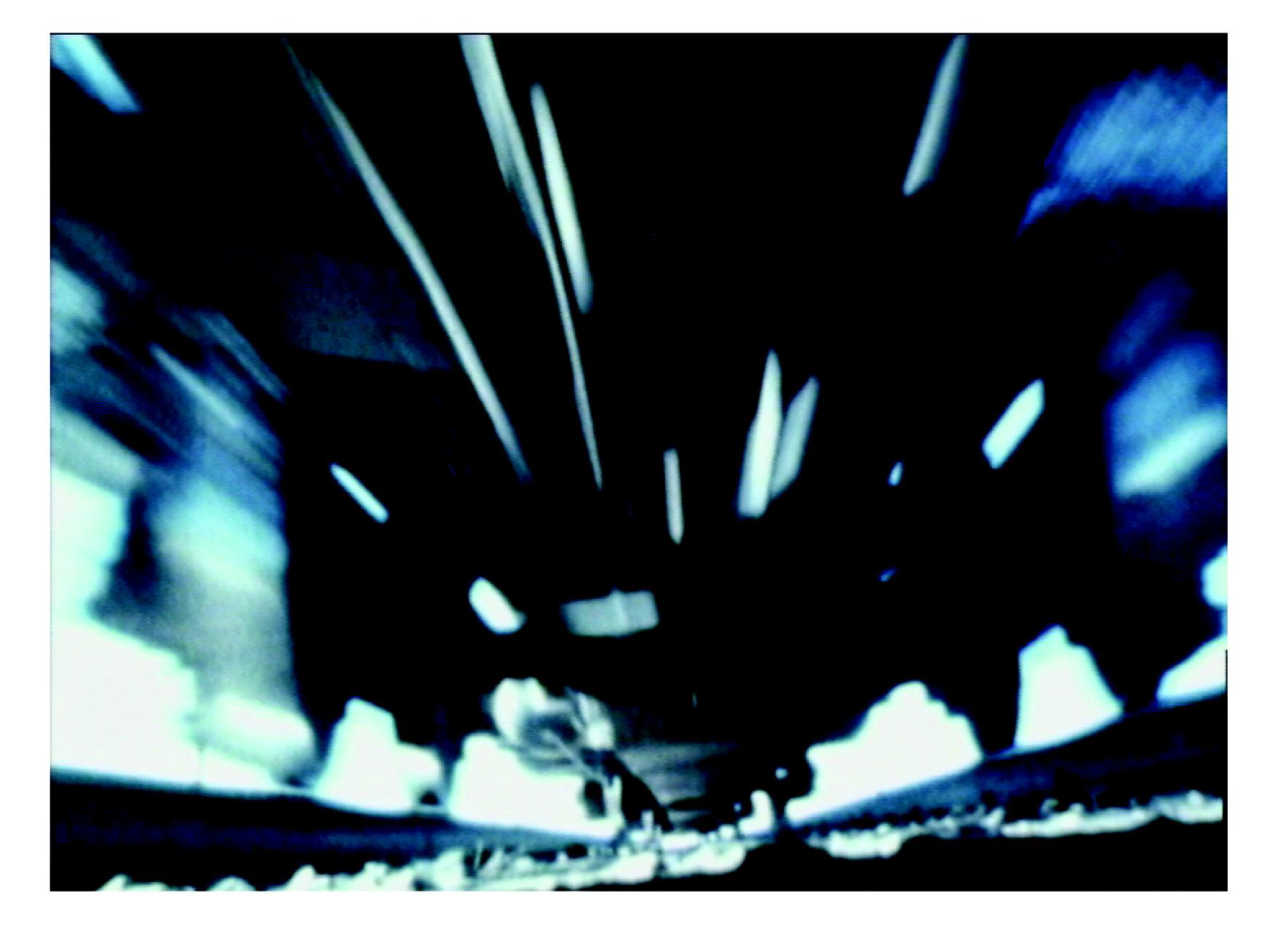 De basiselementen van cinema: tijd, ruimte en de werking tussen beeld en geluid stralen van het doek in deze abstracte filmische ervaring. -