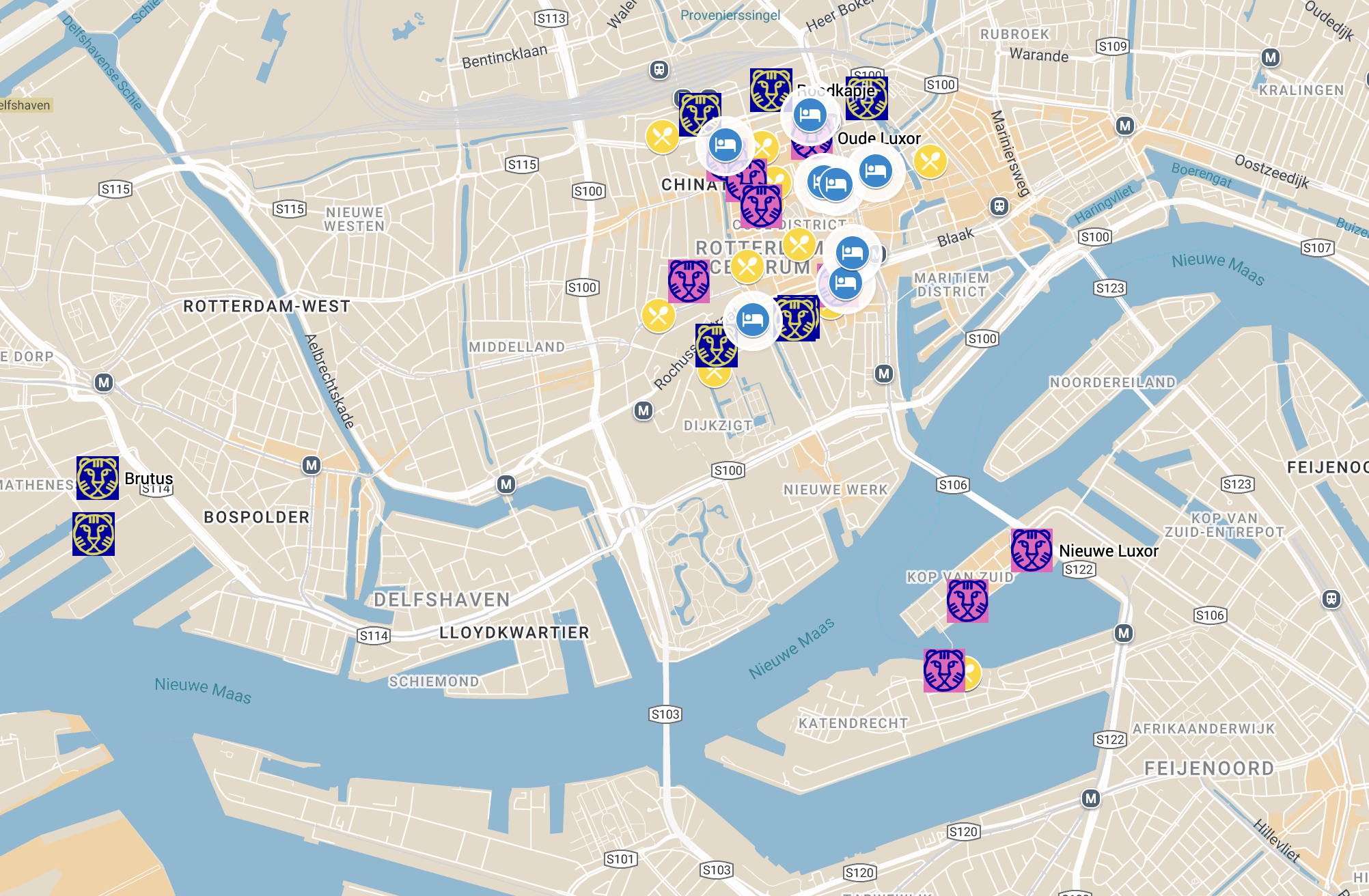 Neem metrolijn D of E, of tram 1, 3, 4, 7 of 11 naar Stadhuis of tram 1, 3, 4, 6, 7, 8, 11 of 12 naar Weena. Vanaf daar is Oude Luxor binnen 5 minuten te bereiken. Vanaf Rotterdam Centraal Station is Oude Luxor binnen 10-15 minuten te bereiken.Type ingang